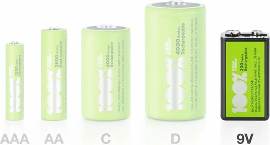 Conventionele oplaadbare batterijen verliezen hun lading als ze een week niet worden gebruikt. Ze moeten ook worden opgeladen voor het eerste gebruik. Met onze oplaadbare batterijen heeft u deze twee problemen niet. Zij hebben een zeer geringe zelfontlading en een verbeterde opslagcapaciteit. Elke batterij is al opgeladen wanneer ze de fabriek verlaat.