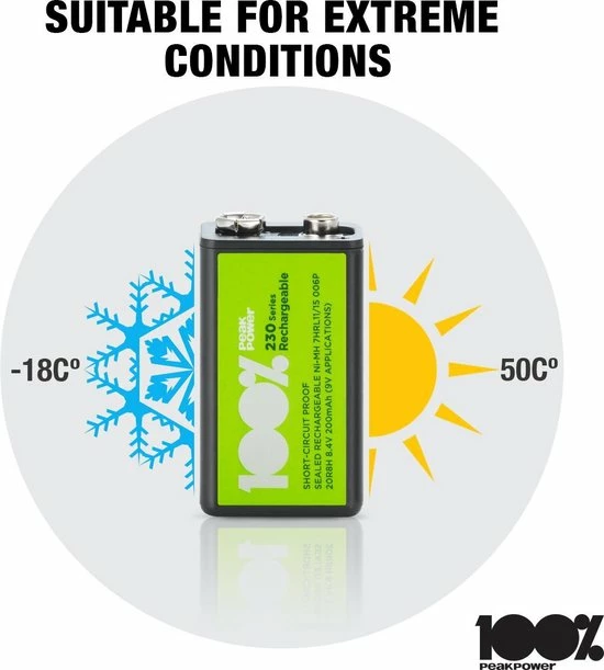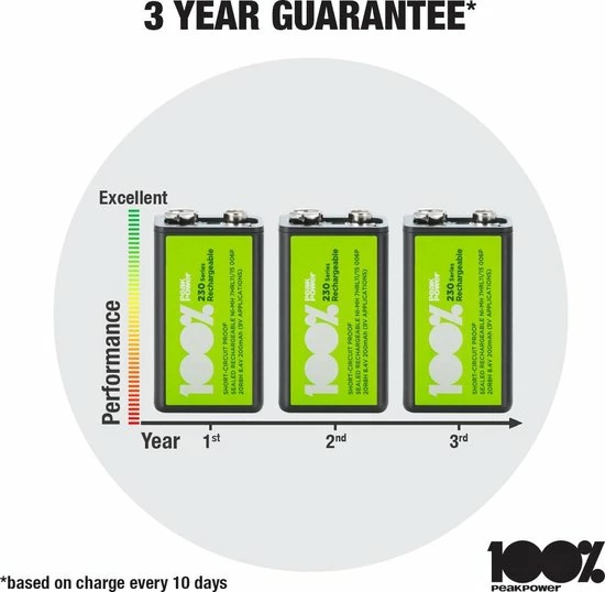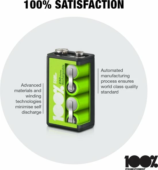 Oplaadbare batterijen van 100% PeakPower hebben een lange levensduur, zijn milieuvriendelijker en ideaal voor apparaten die u vaak gebruikt.