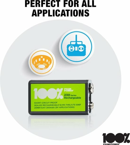 Oplaadbare 9V batterij – Geschikt voor alle populaire batterijladers en standaardtoepassingen op de markt zoals: modelbouw, gereedschap, speelgoed, zaklampen, enz.