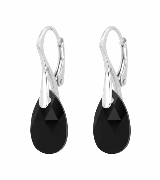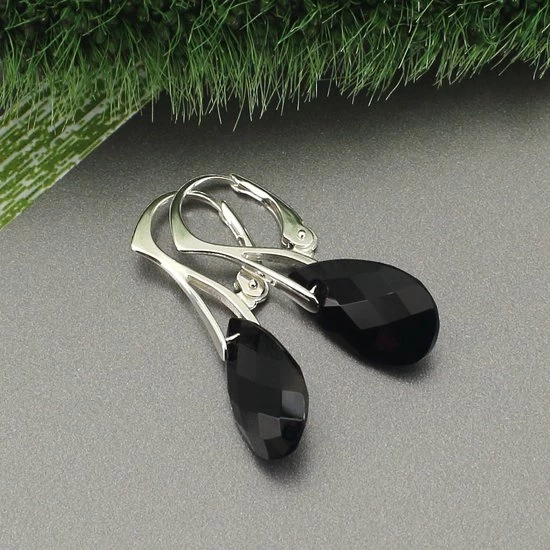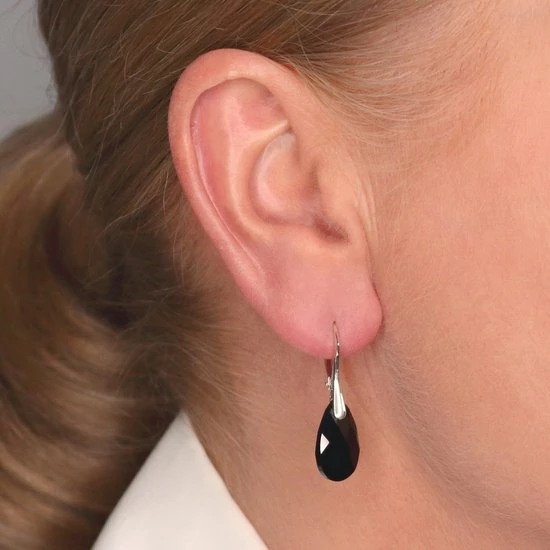 Elegante sterling zilveren oorbellen met een hanger met een amandelvormige druppel gemaakt van zwarte onyx.