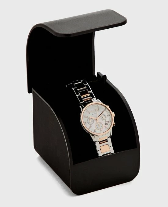 Dit Armani Exchange AX4331 dameshorloge is gecombineerd met zilver en rรณsegoud en zorgt voor een elegante look.