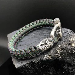 Deze Paracord Armband met massief zilveren kop wordt met de hand gemaakt uit รฉรฉn stuk zilver waardoor er geen onderdelen kunnen afvallen . De Bedel hoofd is uitgewerkt tot in de kleinste details.