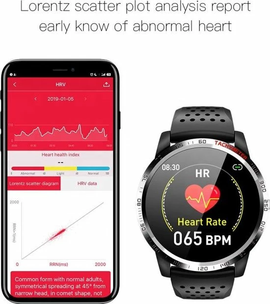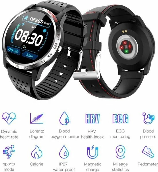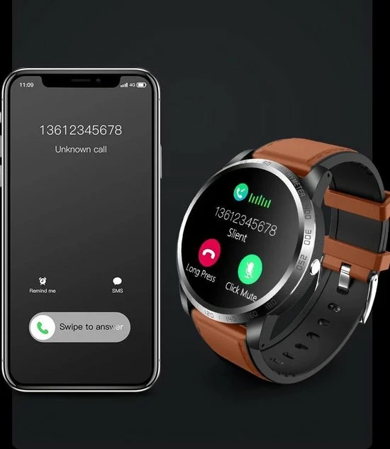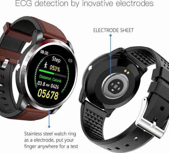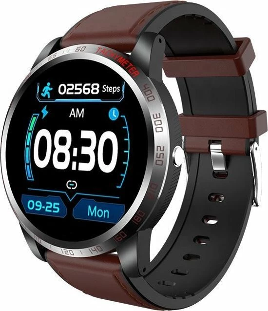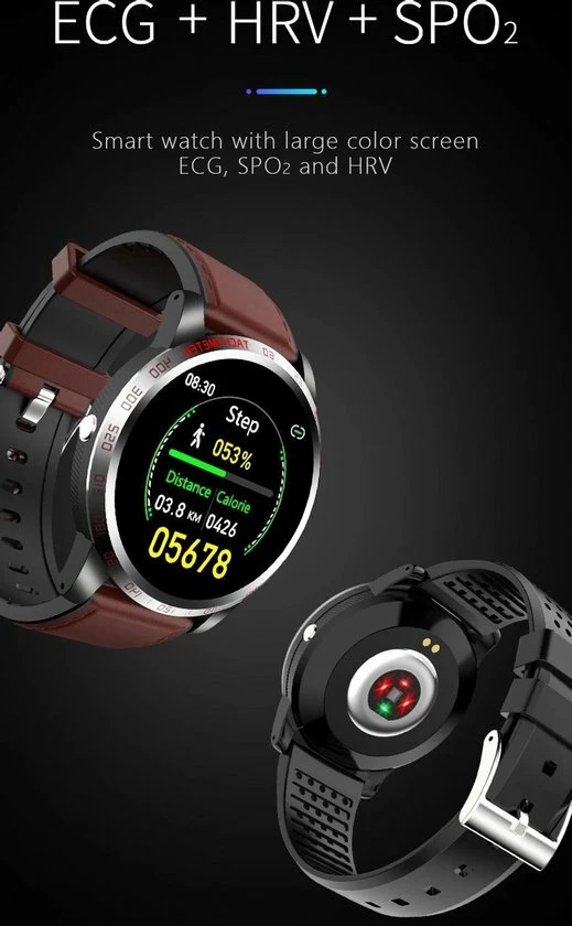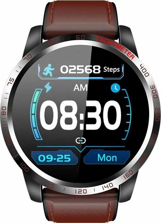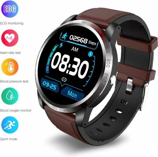 Smartwatch Belesyยฎ Tachy – Smartwatch Heren – Smartwatch Dames – Horloge – Stappenteller – Hart ECG – 1.3 inch – Kleurenscherm – Donker Bruin – Leer