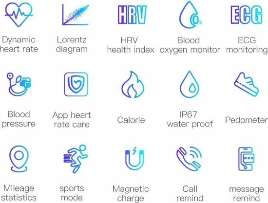 De Smartwatch Belesyยฎ Tachy werkt met zowel Android 4.4 (bijvoorbeeld Samsung, Huawei etc.) en hoger alsook met iOS 8.0 (iPhone, Apple) en hoger. Gebruikt Bluetooth 4.0 en werkt met de gratis App H Band. De Tachy heeft een krachtige 220 mAh accu die bij normaal gebruik meerdere dagen mee gaat en als horloge ruim 2 weken. Opladen gebeurt met een bijgeleverde magnet. Uw smartwatch is waterdicht maar niet bedoeld om mee te douchen, te zwemmen, te baden of in de sauna te gaan.ische USB oplaadkabel.