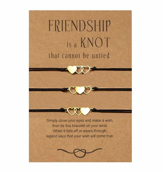 Deze set van drie vriendschapsarmbanden symboliseren oprechte liefde voor elkaar. Deze set armbanden laat je hechte band in de vorm van een prachtig sieraad uiten.
