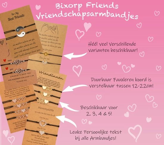 Deze nieuwe Bixorp Friends armbanden zijn een ontzettend leuk cadeau voor jou en je vriendin. Ze zijn gemaakt van hoogwaardige materialen, hebben een hoog draagcomfort, volledig millieuvriendelijk en bovenal hartstikke leuk om te dragen!