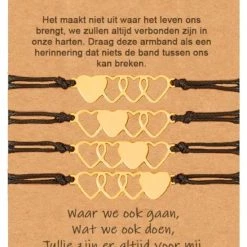 Deze drie vriendschapsarmbanden symboliseren oprechte vriendschap en liefde voor elkaar. Deze set armbanden laat je hechte band in de vorm van een prachtig sieraad uiten.