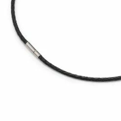 Deze Boccia Titanium ketting is van gevlochten leer en heeft een titanium sluiting.