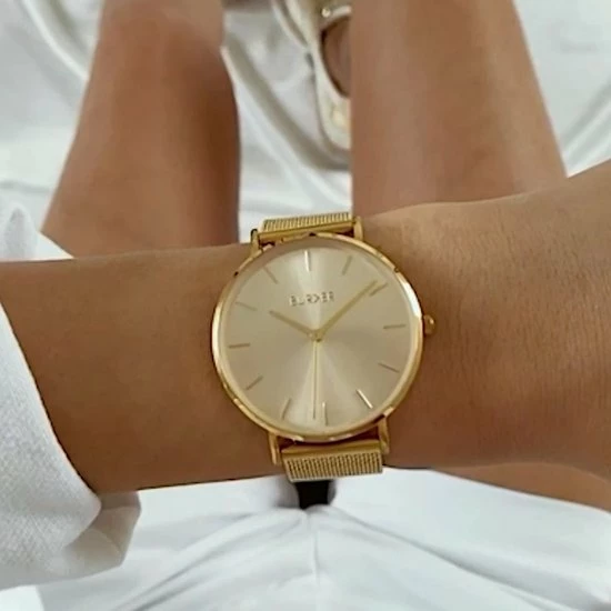 Goudkleurig dames horloge Ruby is het hoogte punt van hedendaagse verfijning. Bij dit polshorloge draait alles om eenvoud. Een super dunne, stijlvolle accessoire voor vrouwen die houden van een minimale look. Dameshorloge Ruby is vrouwelijk, geen glitter en glamour namens haar – ze draait om eenvoud. Ze is RUBY.