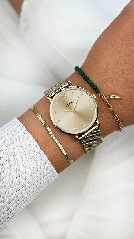 Flash-uitverkoop π Cluse Minuit Mesh Crystals Dames Horloge Goud Kleurig – 33 Mm π