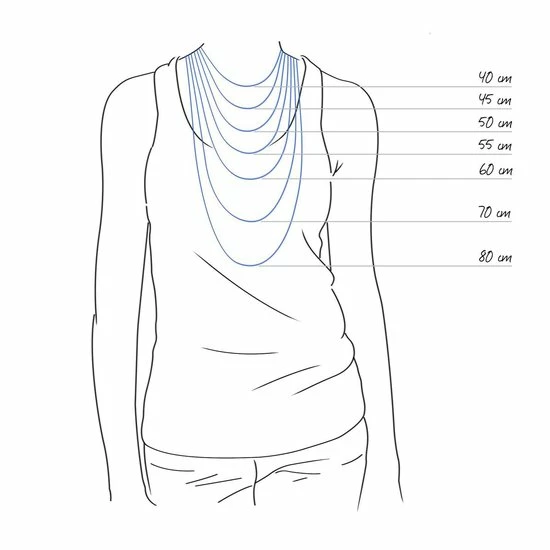 De lengtes 70 en 80 cm zijn extra lang.Een tip om de lengte te bepalen is.Gebruik een oude ketting of een koordje die je opmeet voor de goede lengte of gebruik een flexibele centimeter je h3bt vaak een langere ketting nodig dan je denk.