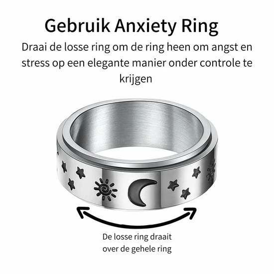 Deze mooie ring is erg handig voor het verminderen van stress en angst en is ook nog eens een stijlvol sieraad. De ring is gemaakt van RVS en heeft een zekere mate van flexibiliteit. Daarnaast is de ring drukbestendigheid en duurzaam. Het modieuze ontwerp is geschikt voor dagelijks gebruik.