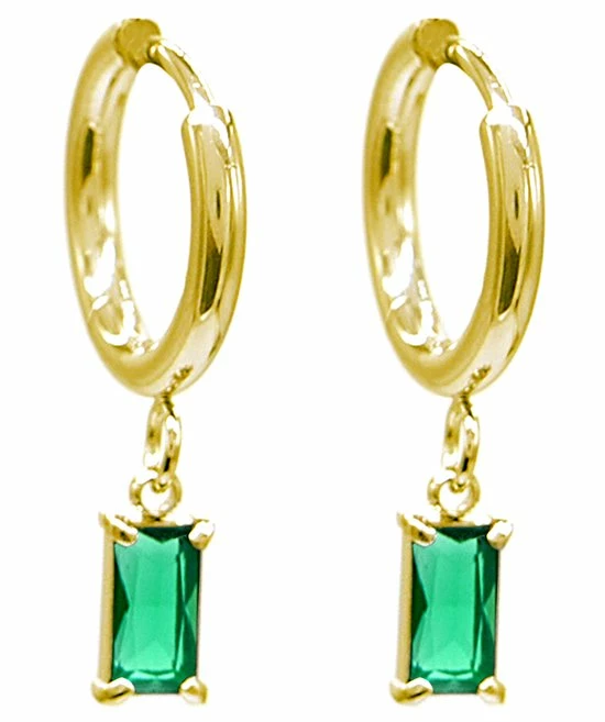 Leuke en mooie oorbellen met als hanger een rechthoekige zirkonia. De oorringen hebben een diameter van 12 millimeter en het hangertje is 6 millimeter.
