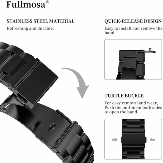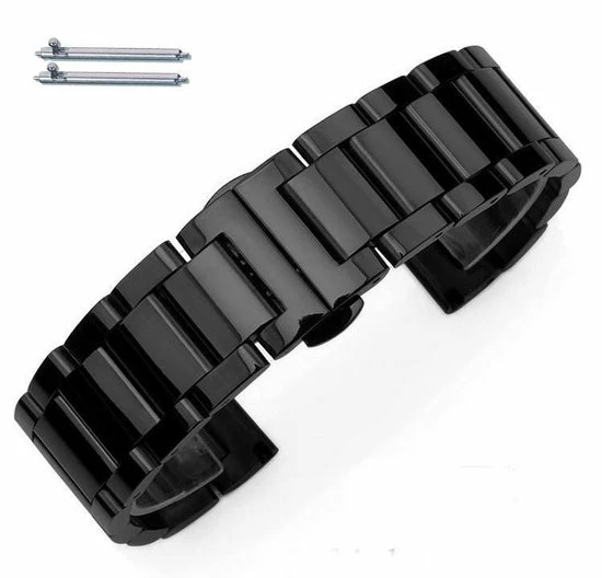 Korting π ELander β Watchband Matt Black – Mat Zwart – 22mm Breed – Horlogeband – Stalen Band – Verstelbaar – Met Verstel Tool π