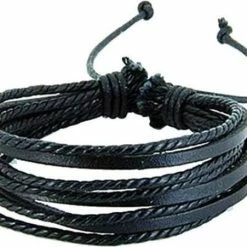 Deze stoere Multilayer armband is gemaakt van leder en touw en gemakkelijk te verstellen door middel van een schuifknoop sluiting. De armband is verstelbaar in lengte van ongeveer 18-24cm.