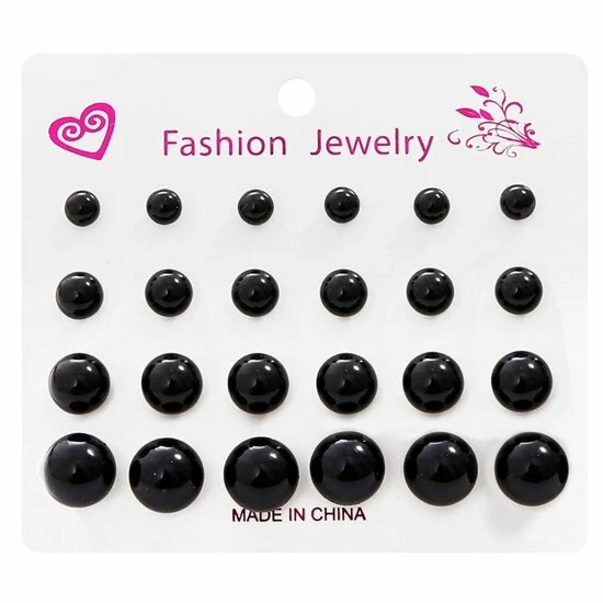 Deze simpele zwarte parel oorbellen zijn al jaren een hot item. Trendy en toch klassiek en natuurlijk goed te combineren bij elke outfit. Dit set bestaat uit 12 paar zwarte oorbellen in verschillende maten. De pareltjes hebben een diameter van ongeveer 4mm, 6mm, 8mm en 10mm.