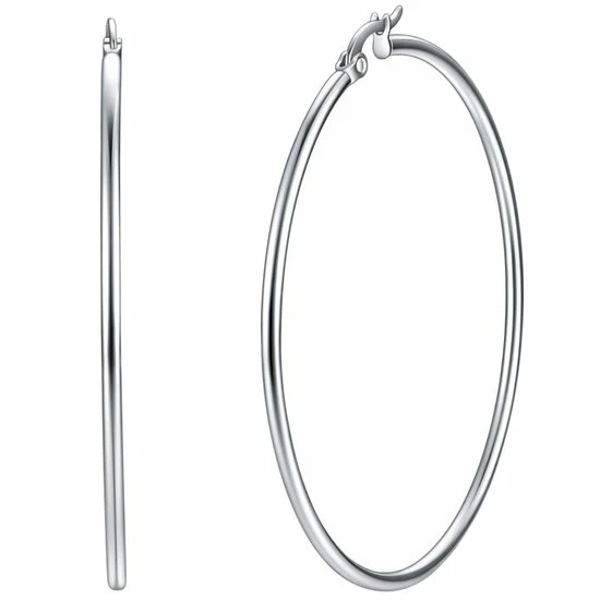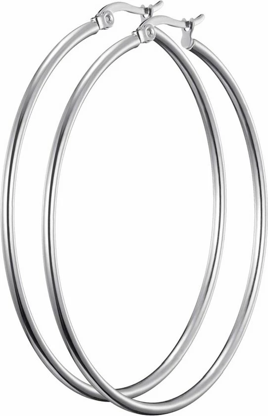 Deze tijdloze oorringen, ook wel hoepel oorbellen genoemd, zijn gemaakt van staal en voorzien van een stevige kliksluiting. Edelstaal of RVS heeft als eigenschappen dat het niet afgeeft, nagenoeg geen irritatie veroorzaakt en mooi blijft. De diameter van deze oorbellen is 50mm en de dikte van de buis is 1.8mm.