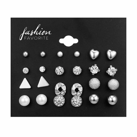 Deze set met 12 paar zilverkleurige oorbellen zorgt ervoor dat je bij iedere outfit of iedere dag van de week een andere set kunt dragen!