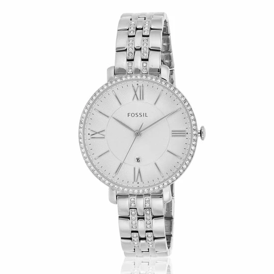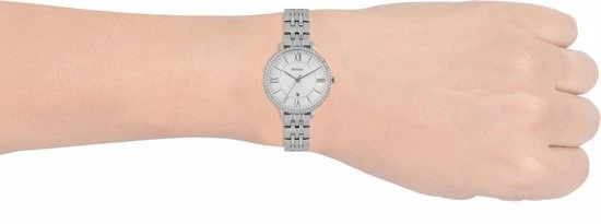 Met de Fossil Jacqueline ES3545 voor dames draag je altijd een mooi accessoire om je pols. Dit horloge heeft een stalen horlogeband en stalen horlogekast met een diameter van 36 mm. Het horloge heeft 2 jaar garantie op het uurwerk.