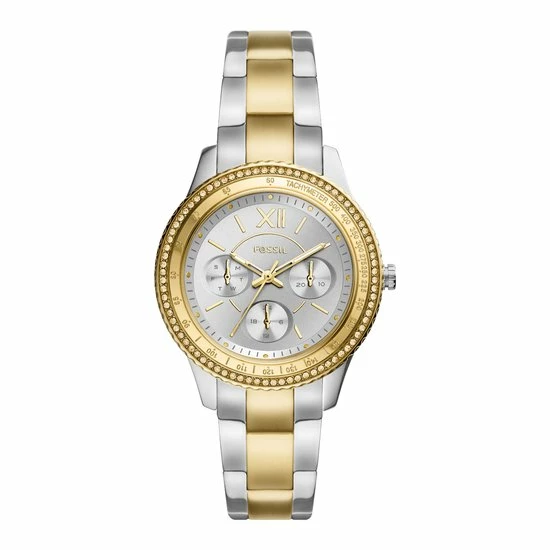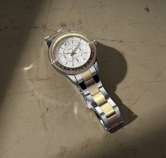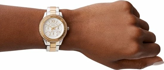 De zilver- en goudkleurige ES5107 van Fossil is een stijlvol horloge, geschikt voor elke gelegenheid. Het dameshorloge draait op een kwalitatief quartz uurwerk, heeft een diameter van 37 mm en een bandbreedte van 18 mm. Een subtiel horloge dat elke outfit af kan maken!