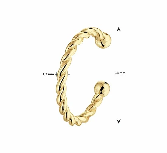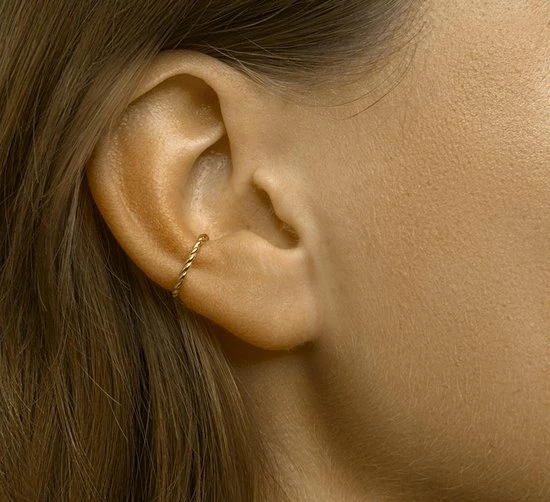 Geelgoud op 925 zilveren earcuff gedraaid. De earcuff heeft een afmeting van13x1.2mm en wordt per stuk verkocht.
