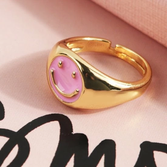 Korting π Goldenspot Ring Smiley – Verstelbaar – Roze – Verstelbare Ring – Smiley π