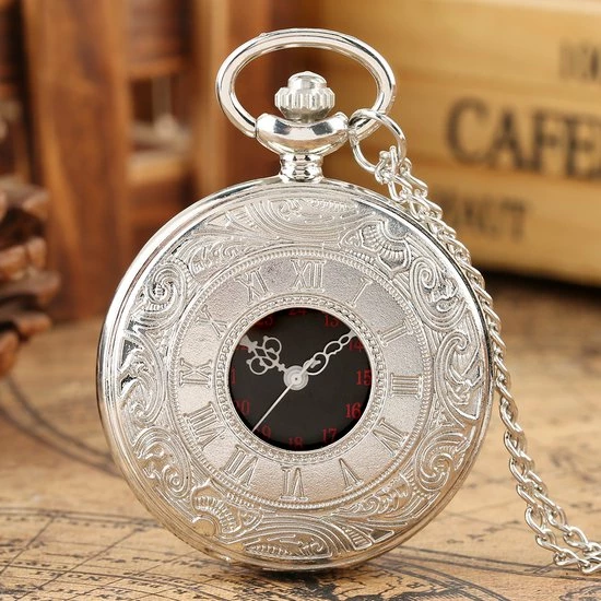 Zakhorloge Quartz Zilver – Pocket watch Met ketting – Quartz zakhorloge met cijfers
