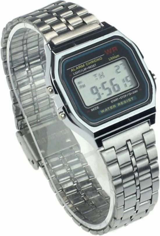Een fijn, digitaal horloge. Dat omvat precies wat dit accessoire is. De stalen geschakelde horlogeband is stevig, maar oogt niet grof. Dat past goed bij de horlogekast die ook niet bijzonder groot is. De kast is rechthoekig en heeft ook een rechthoekig scherm. Dit horloge geeft de tijd en datum aan, kan oplichten Γ©n heeft een alarmfunctie. Bovendien past dit horloge bij vrijwel elke outfit die je aanhebt en dat is ook niet verkeerd!