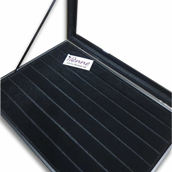 + Door de glazen deksel worden je sieraden mooi gepresenteerd.