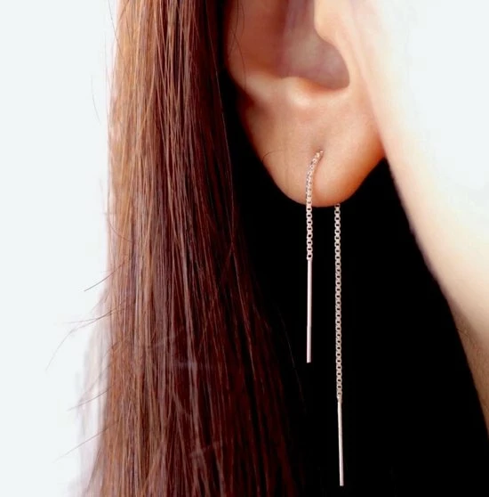 Elegante, moderne threader oorbellen zijn perfect voor elke minimalistische earparty! Duw het kettinkje door het gaatje in je oorlel voor een exclusieve uitstraling.