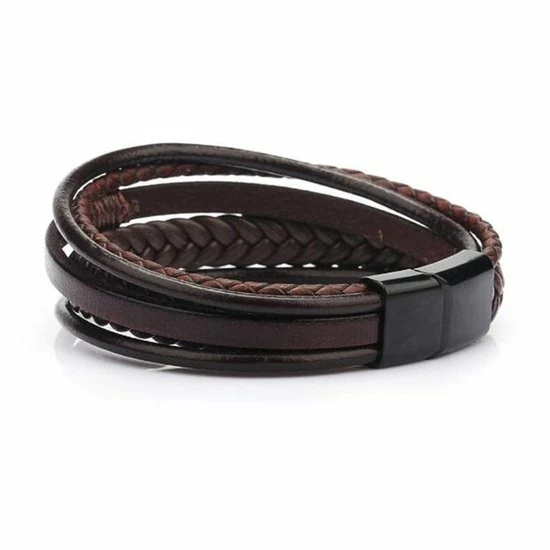 Verkrijgbaar in 2 kleuren (zwart/bruin) en 2 kleuren sluiting (zwart/zilver).