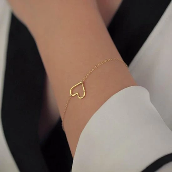 Mooi fijn goudkleurig armbandje met een hartje. Deze armband wordt geleverd in een sieradendoosje, dus ook leuk om weg te geven.