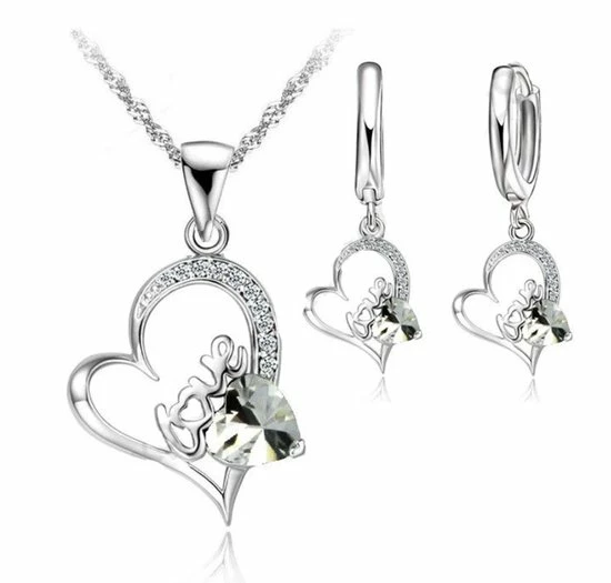 Ketting dames | oorbellen dames | sieradenset dames | 925 zilver plated | ketting met hartje| dames oorbellen met hart hanger | Ketting en Oorbellen dames met love hanger | cadeau voor vrouw | cadeau voor vriendin | liefdescadeau