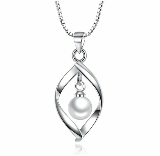 Ketting dames | oorringen dames | 925 zilver | parel ketting en parel oorbellen zilver dames | ketting met parel hanger | parel oorbellen zilver | sieraden geschenkset | cadeau voor vrouw