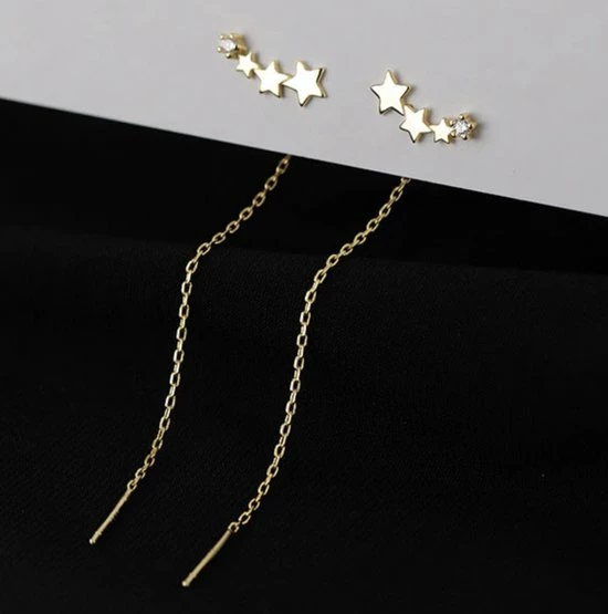 Oorbellen dames | oorhangers dames | doortrekoorbellen dames | 925 zilver | gold plated | ster oorbellen | cadeau voor vrouw