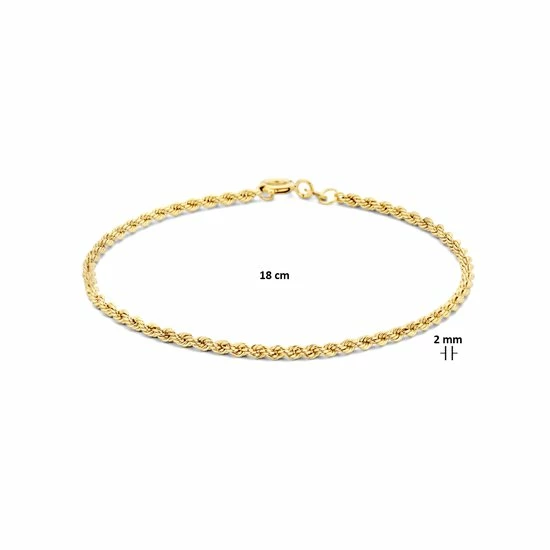 Deze Marie-Celeste koordarmband is 18cm lang en de schakels zijn 2,0 mm breed.