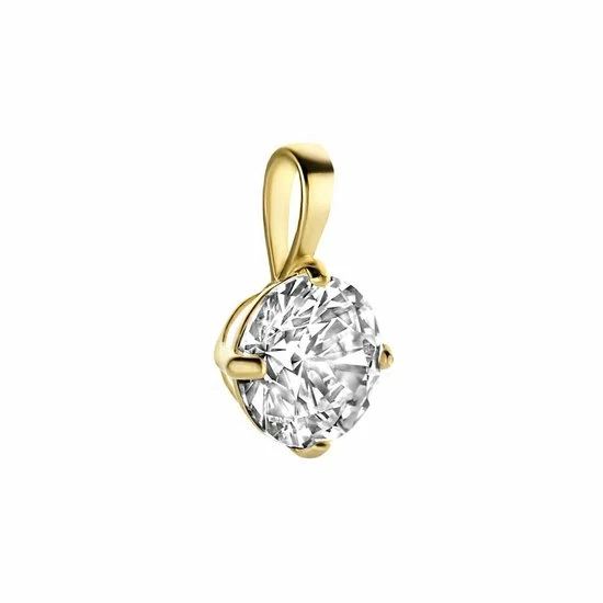 Korting π New Bling 9NBG-0194 Gouden Hangertje – Dames – Zirkonia – 6 Mm – Solitair – 4 Poot Zetting – 14 Karaat – Goud π