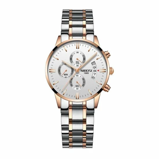 β 1x NIBOSI Quartz Zilver/RosΓ©/Wit Design Dameshorloge