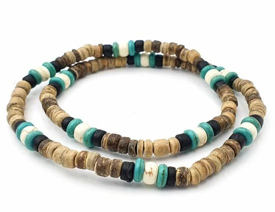 Beste recensies van π NO EVIL ® Kralenketting SURF Donkerbruin Met Kokoskralen En Turquoise Kraaltjes β