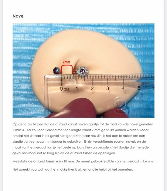 De navelpiercing is vervaardigd uit 100% chirurgisch staal 316L.