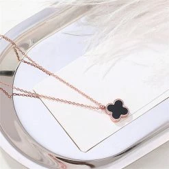 Promo ๐ Clover Ketting – Zwart / Wit – Rosekleurig | Bijoux | 40 + 5 Cm | Fashion Favorite ๐
