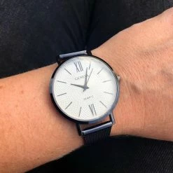 Goedkoopste โค๏ธ Fashion Favorite Geneva Roman Mesh Horloge – Zwart – Staal – Ø 38 Mm ๐ฅ