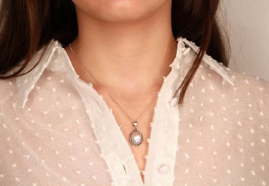 Handgemaakte 925 sterling zilver maansteen edelsteen hanger. De maansteen heeft een blauwe glans bij bepaalde lichtinval. Bekijk onze shop voor bijpassende oorhangers!