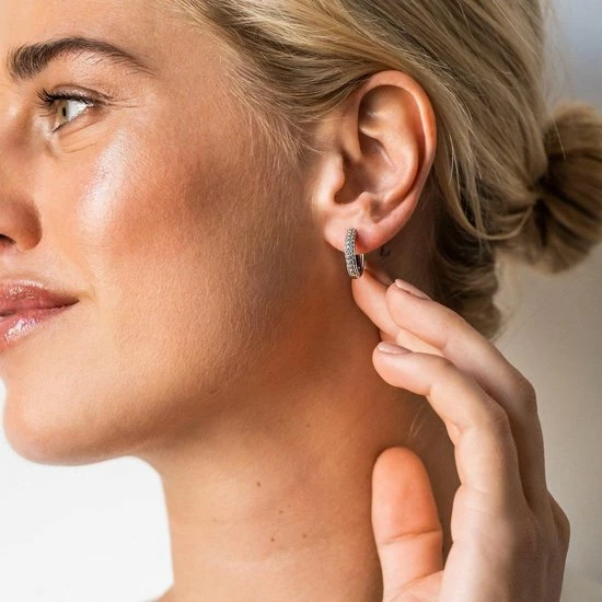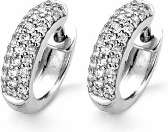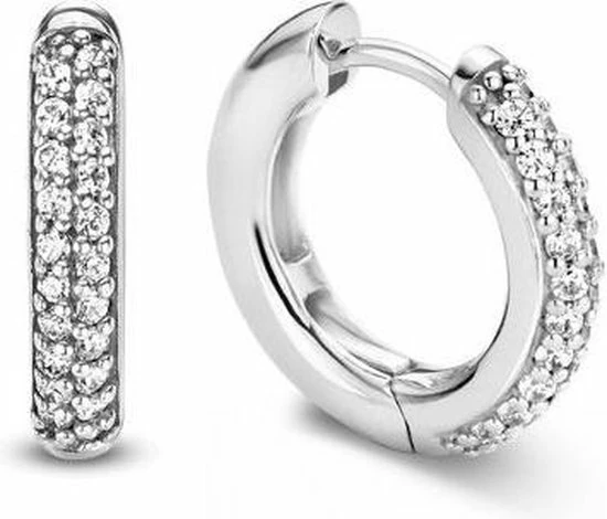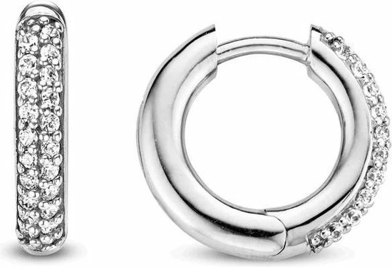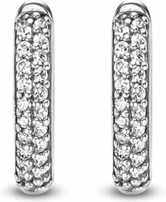 Deze TI SENTO – Milano oorbellen hebben een doorsnede van 18 mm. De oorbellen zijn gemaakt van gerhodineerd sterling zilver en gezet met twee rijen briljant geslepen zirkonia’s. De oorbellen kunnen zowel los worden gedragen als samen met oorbedels. Vanwege de grootte van dit sieraad is het goed om te combineren met bredere oorbedels, zodat deze niet wegvallen in het geheel.