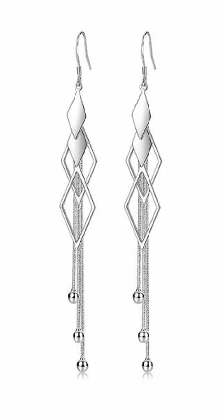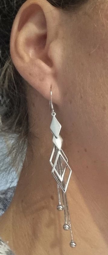 Deze leuke dames oorbellen mogen in jouw sieraden collectie niet ontbreken! Het zijn 925 sterling zilveren oorbellen in de vorm van een ruit met daarbij drie speelse slierten met bolletjes eraan.