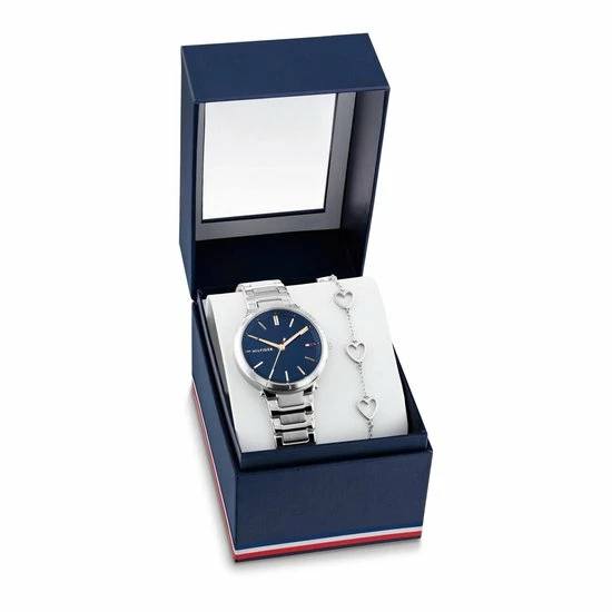 Dit is de TH2770111 horloge van Tommy Hilfiger. Het horloge heeft een Quartz uurwerk. De wijzerplaat is Blauw en is afgedekt met Mineraalglas. De kast is gemaakt van RVS en heeft een diameter van 34 mm. De band van het horloge is Zilverkleurig en gemaakt van RVS. Van dit horloge heb je jarenlang draagplezier!