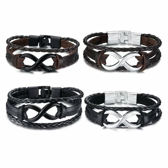 Infinity armband voor heren gemaakt van leer met stalen infinity bedel – Zwart.