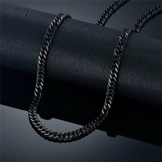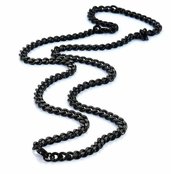 Zwarte ketting voor heren gemaakt van staal.Smalle, strak afgewerkte ketting voor heren. Afgewerkt met stalen karabijnsluiting.β Lengte: 60cmβ Schakels: 6mm breedβ Materiaal: Staalβ Sluiting: Karabijnβ Levering: Fluwelen TrendFox giftbagOok verkrijgbaar in goud en zilver kleurige uitvoeringen.