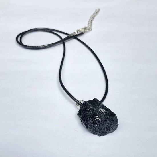 Ketting Toermalijn:Stoere 45- 50 cm lange veterketting van gewaxed koord met een stoere Toermalijn hanger.
