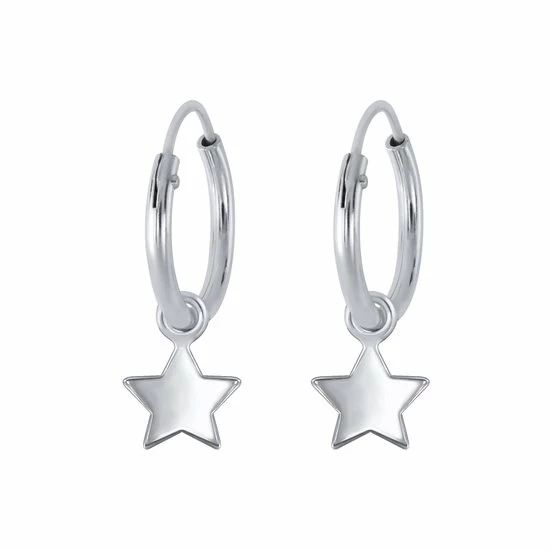 Zilveren oorbellen | Oorringen met hanger | Zilveren oorringen met hanger, ster
